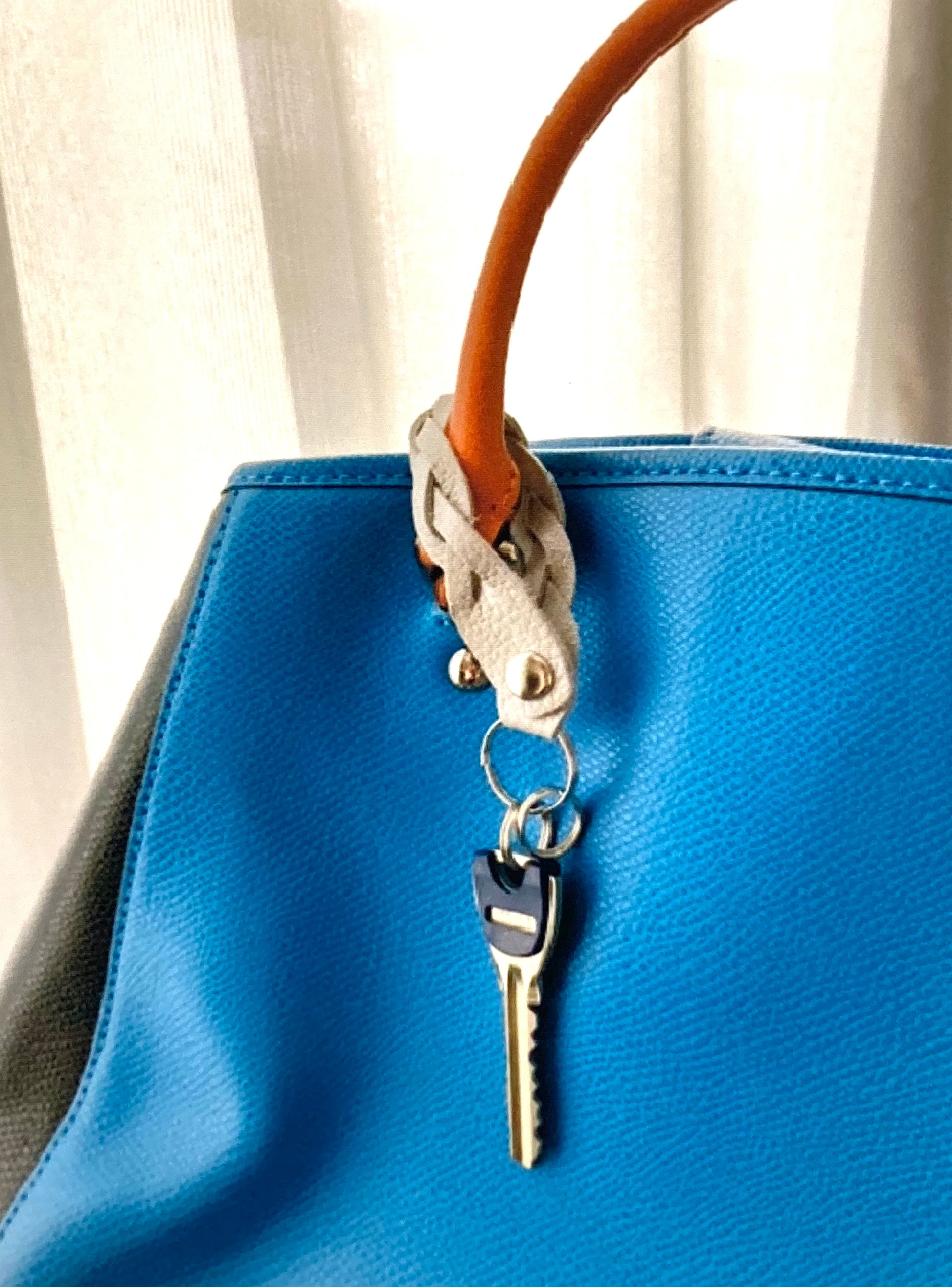 金具部分がホック式になっていてバックの取手などにカギなどを取り付けてお使い下さい。