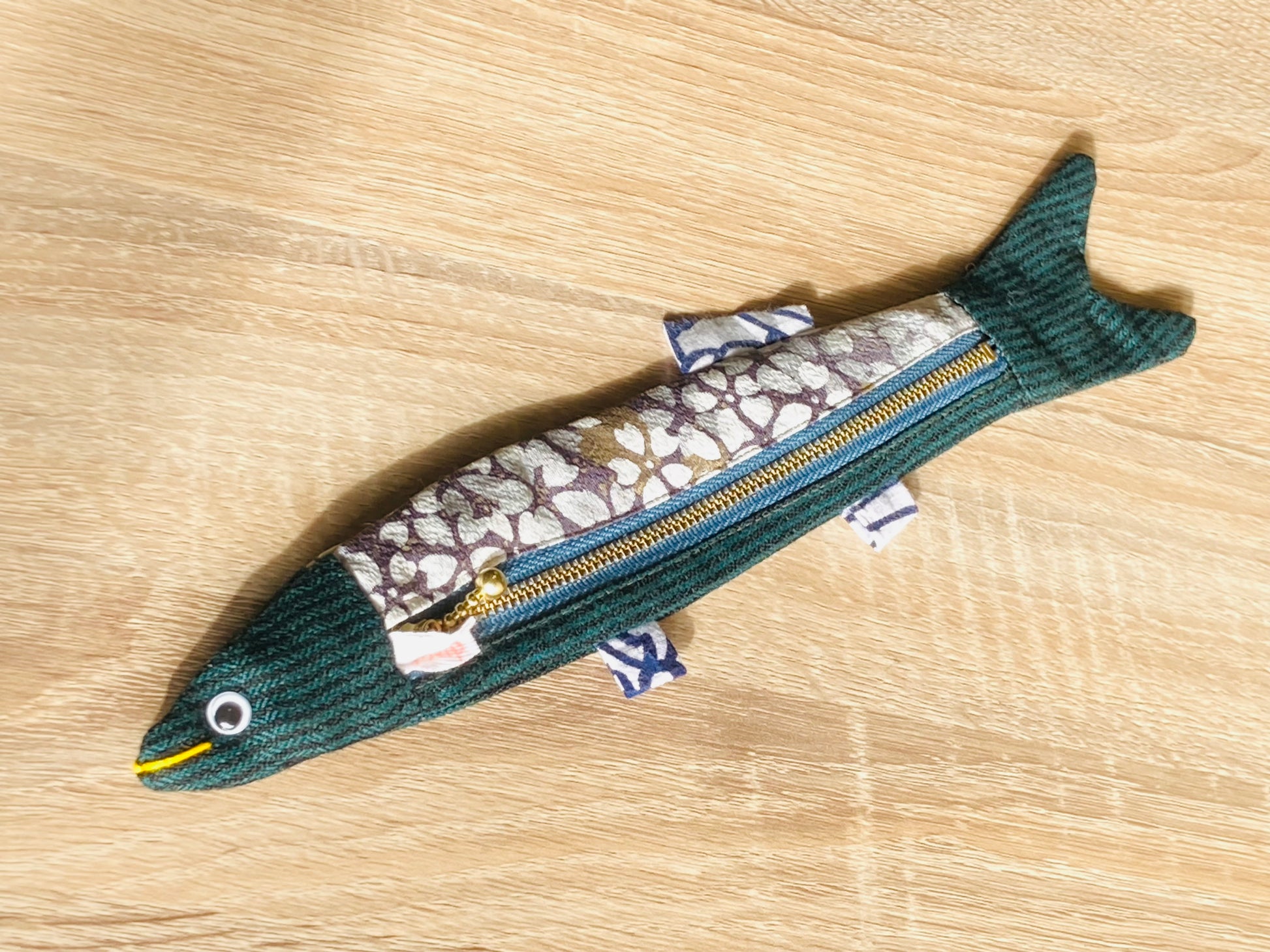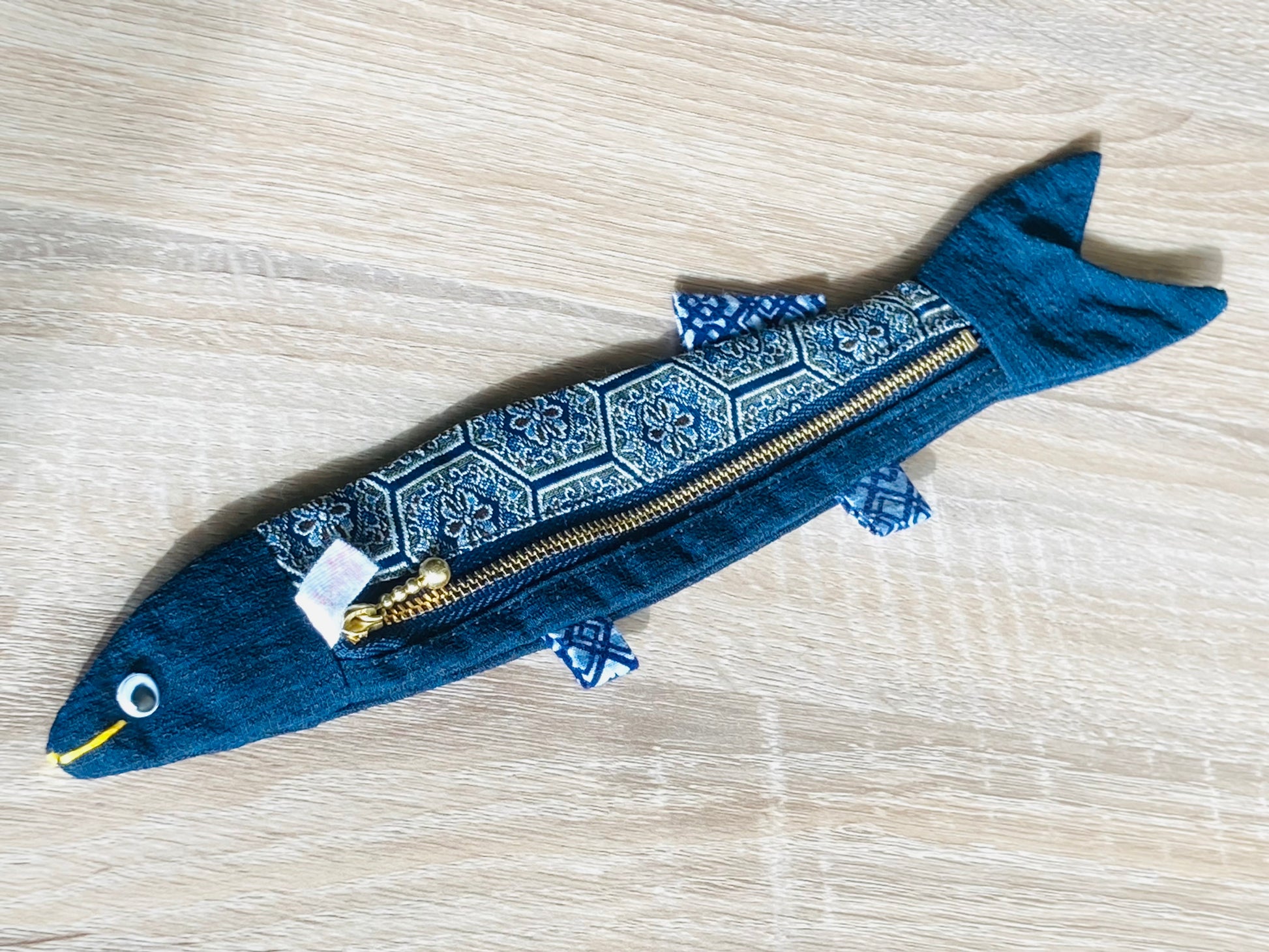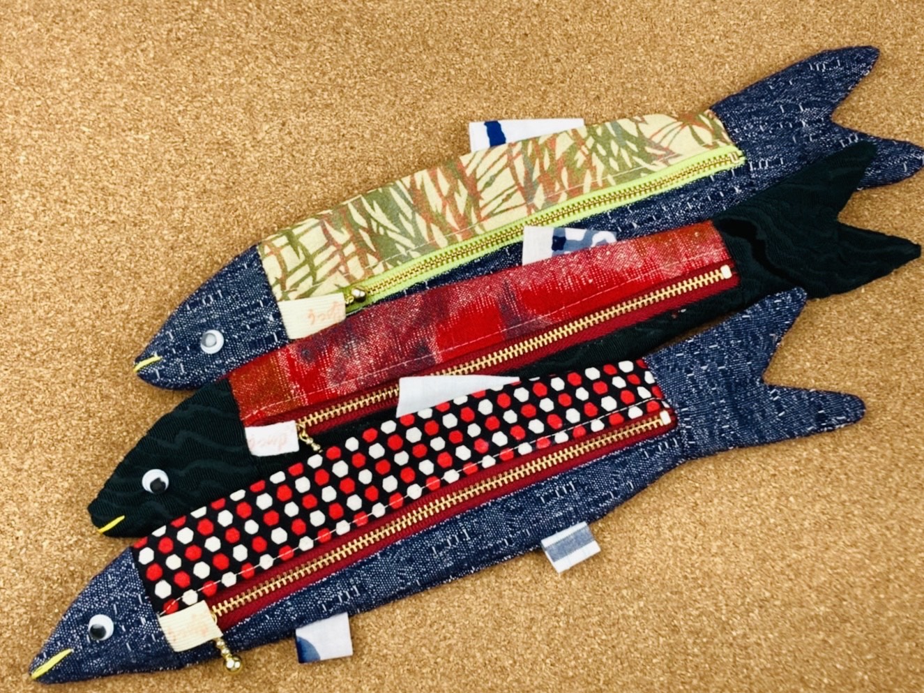 着物をリメイクしたもので出来た、サンマの形をしたペンケース どこへ行っても愛されるベストセラー商品となっています。